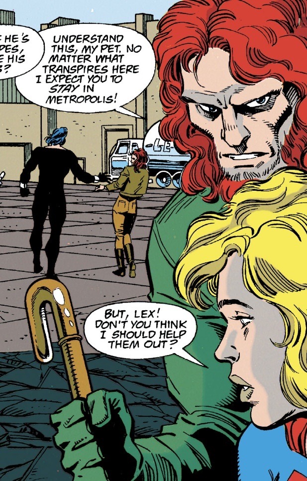 superman #81: lex tells mae- ‘understand this, my pet. no matter what transpires here i expect you to stay in metropolis’ and mae says ‘but, lex! dont you think i should help them out?’